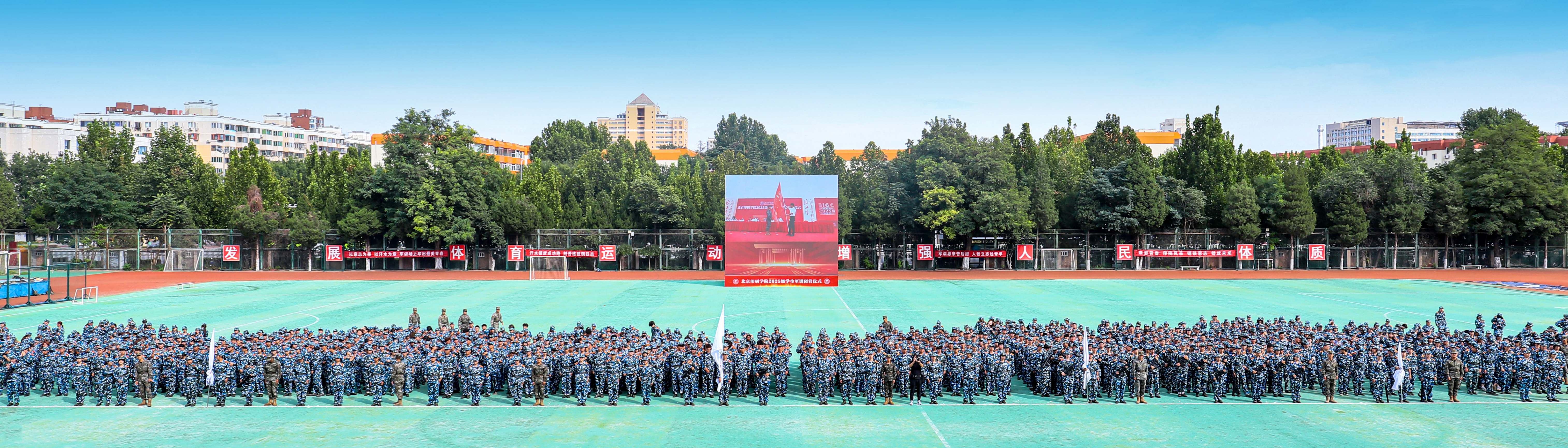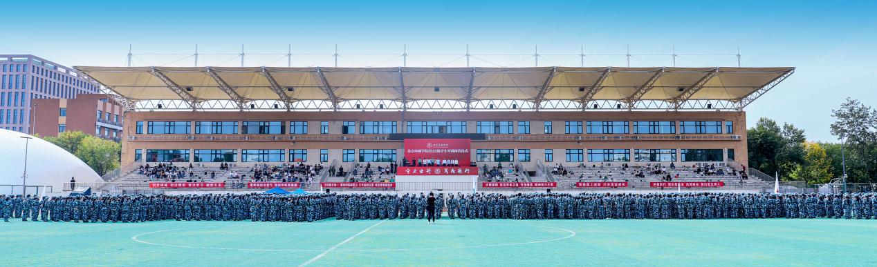 在纪念中国人民抗日战争暨世界反法西斯战争胜利80周年之际,9月26日下午,学校2025级本科新生军训闭营仪式举行。大兴区人民武装部部长邓晓兵,人民武装部副部长解刚,学校党委副书记、院长田忠利,党委副书记白莽,党委常委、纪委书记冯怡,党委常委、副院长刘益、杜艳平,副院长陈丹,党委常委、宣传部部长王新营,学校各职能部门负责人、各二级学院党委副书记、承训部队教官、2025级新生辅导员和2025级全体本科新生参加闭营仪式。仪式由学校党委学工部副部长、武装部副部长朱磊主持。