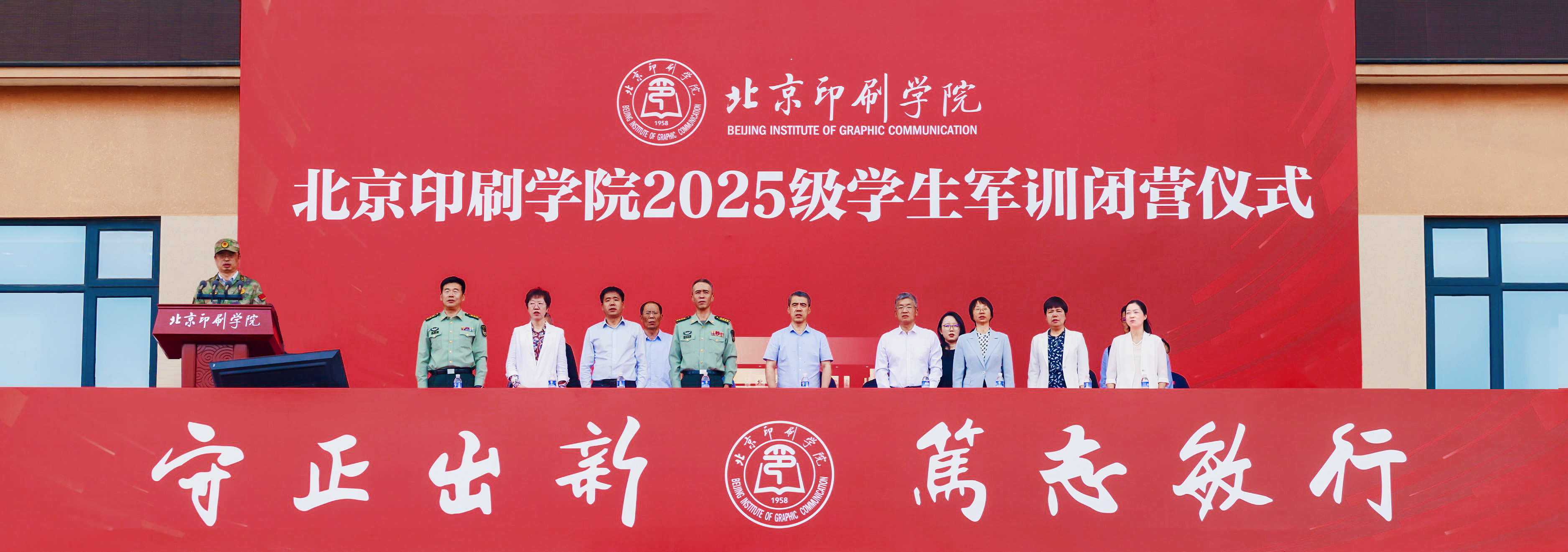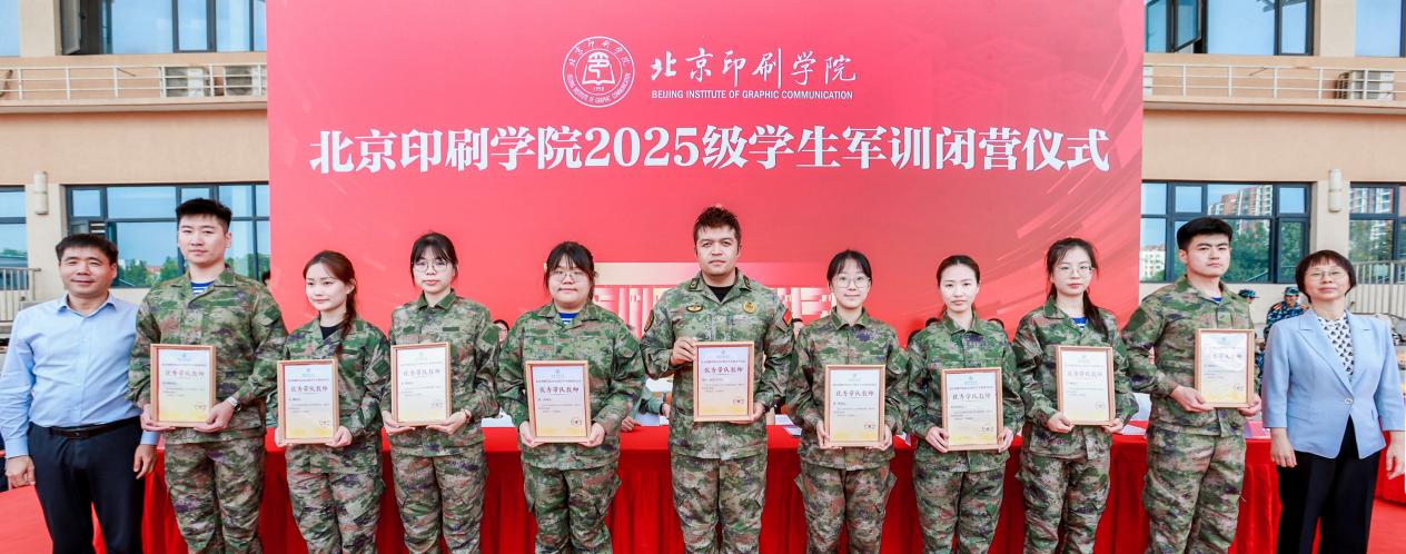 白莽宣读优秀带队教师、军训优秀标兵名单。学校领导为获奖师生代表颁发证书,勉励受表彰师生珍惜荣誉、再创佳绩,号召广大师生以先进典型为榜样,厚植家国情怀,勇担时代使命,将个人理想融入出版强国建设的伟大事业中,以实际行动践行“守正出新 笃志敏行”的校训精神,为推进文化强国建设贡献北印力量。