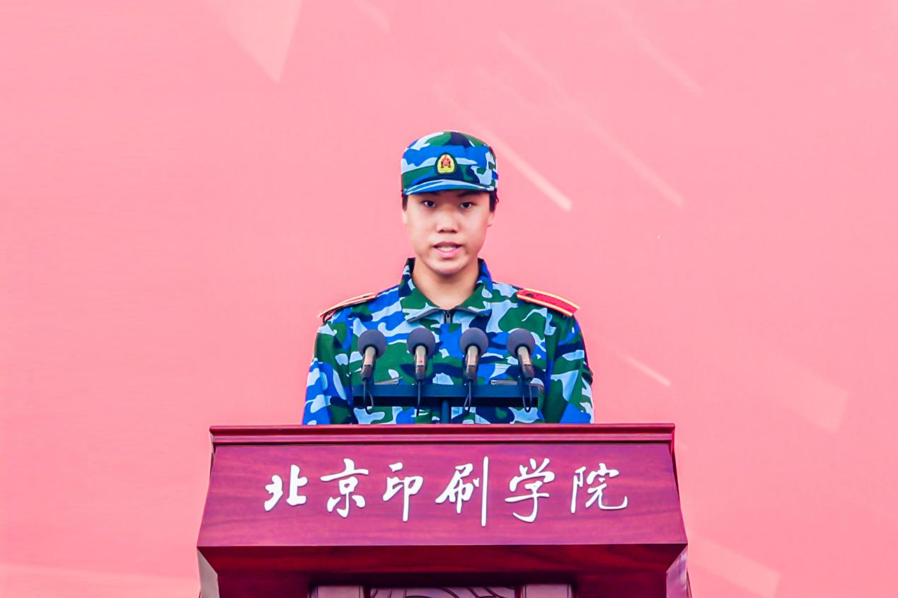 新媒体学院新生郝琢如作为学生代表发言,他表示,军训是大学旅程中一场淬炼意志的成长仪式。从正步走的整齐划一到团队协作的默契配合,军训教会大家“集体意识”的重要性。未来将延续这份精神,以军姿般的专注投入课堂,用战友之情互帮互助,凭不放弃的意志攻克难题,努力成长为有理想、敢担当、能吃苦、肯奋斗的新时代好青年。